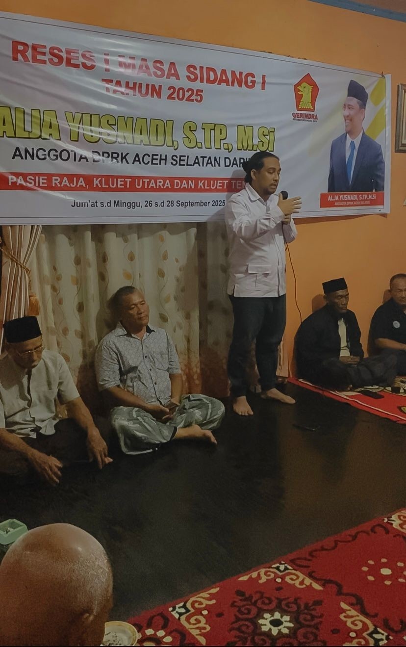ASPIRATIF.ID — Anggota DPRK Aceh Selatan Dr. (Cand) Ir. Alja Yusnadi, S.TP, M.Si menggelar Reses I Masa Sidang I Tahun 2025 di Kecamatan Pasie Raja, Jum’at (26/9/2025).