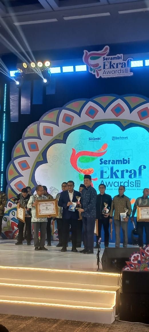 Adapun penghargaan itu diserahkan langsung oleh Menteri Ekonomi Kreatif RI T. Riefky Harsya didampingi Pemimpin Perusahaan Serambi Indonesia Mohd Din.