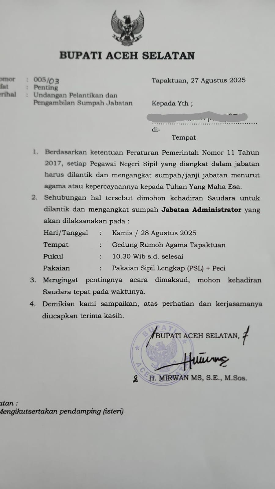 Foto: Pemerhati Sosial Aceh Selatan, Anhar Sawang ASPIRATIF.ID — Setelah 6 bulan menjabat sebagai Bupati Aceh Selatan H.Mirwan melakukan mutasi, rotasi serta promosi 41 pejabat eselon III di lingkungan Pemerintah Kabupaten Aceh Selatan, Kamis 28 Agustus 2025 bertempat di Gedung Rumoh Agam Tapaktuan.
