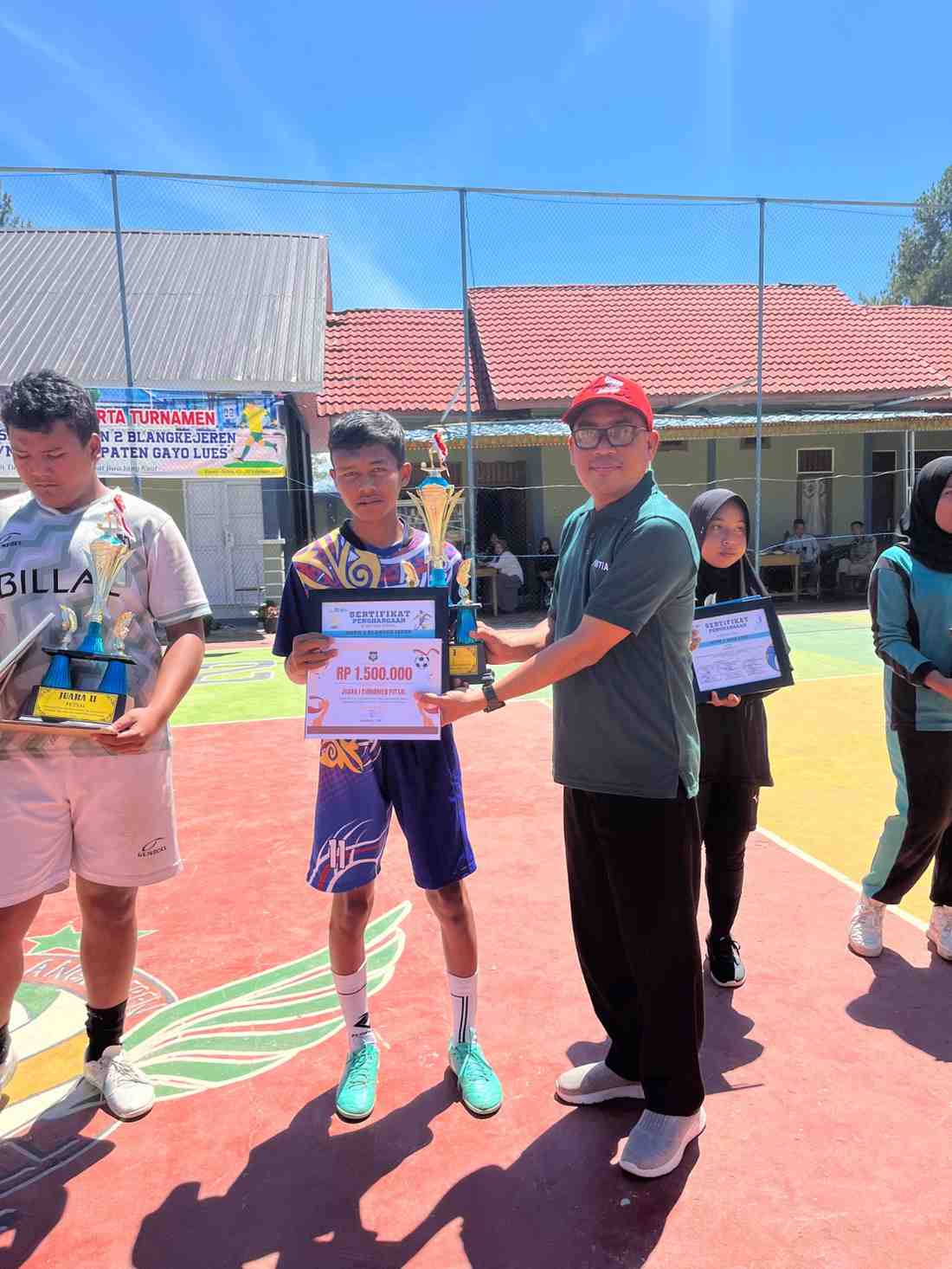 Junaidi menyebutkan juara turnamen Futsal diraih oleh SMP Negeri 1 Blangkejeren sebagai juara satu, SMP Terpadu Muhammadiyah keluar sebagai juara dua.
