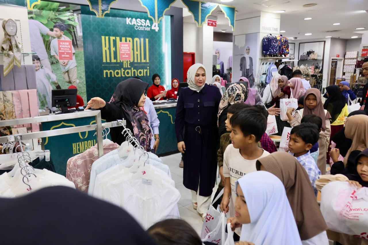 Hari ini, perempuan yang akrab disapa Kak Na itu mengajak anak yatim, fakir miskin dan anak-anak para pengungsi serta warga kurang mampu lainnya untuk berbelanja baju lebaran.