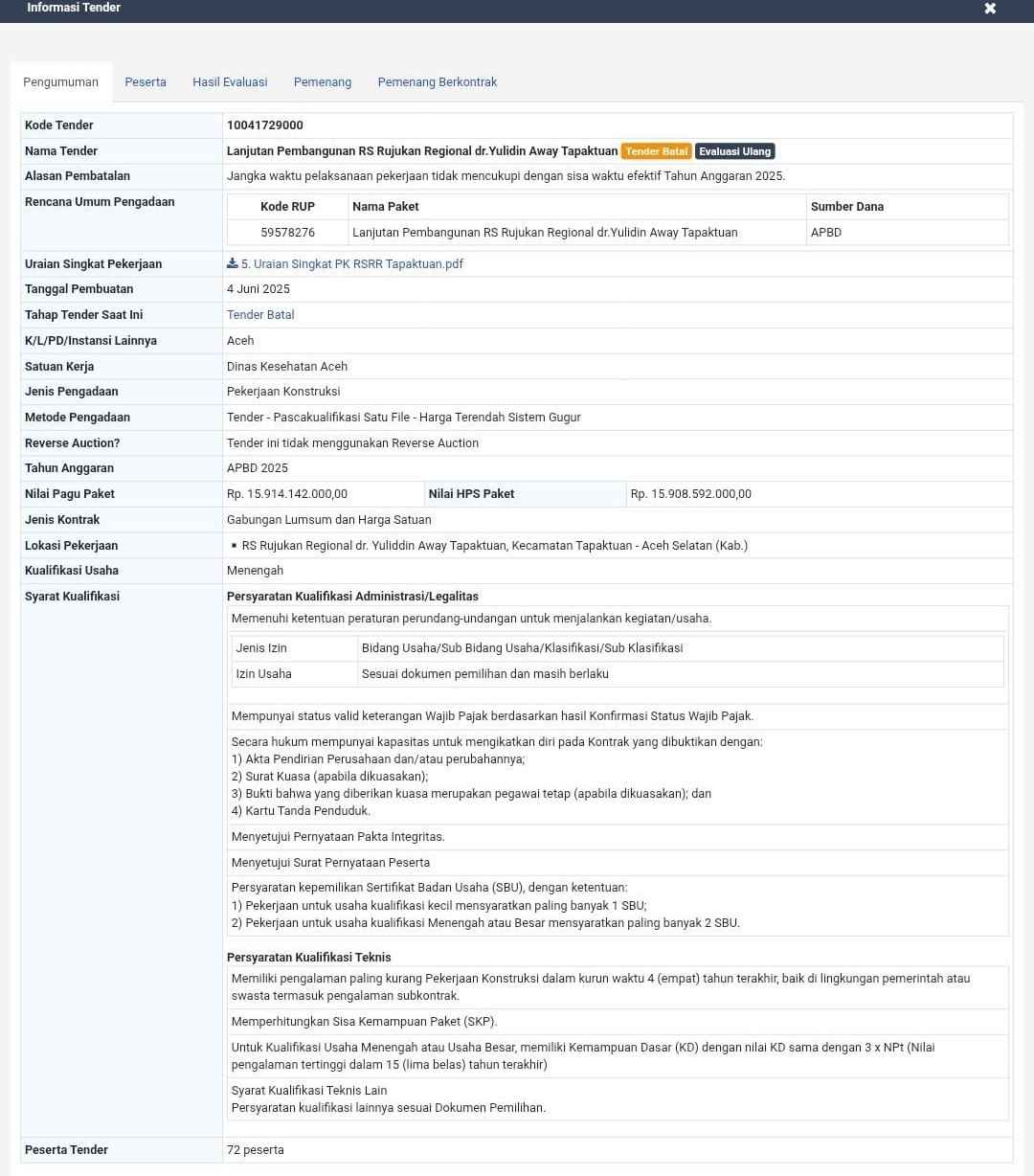 Secara regulasi, Peraturan Presiden Nomor 46 Tahun 2025 yang mengubah Perpres 16 Tahun 2018 tentang Pengadaan Barang/Jasa Pemerintah mewajibkan pembatalan tender dilakukan dengan alasan objektif, dokumentasi resmi, dan keterbukaan penuh.