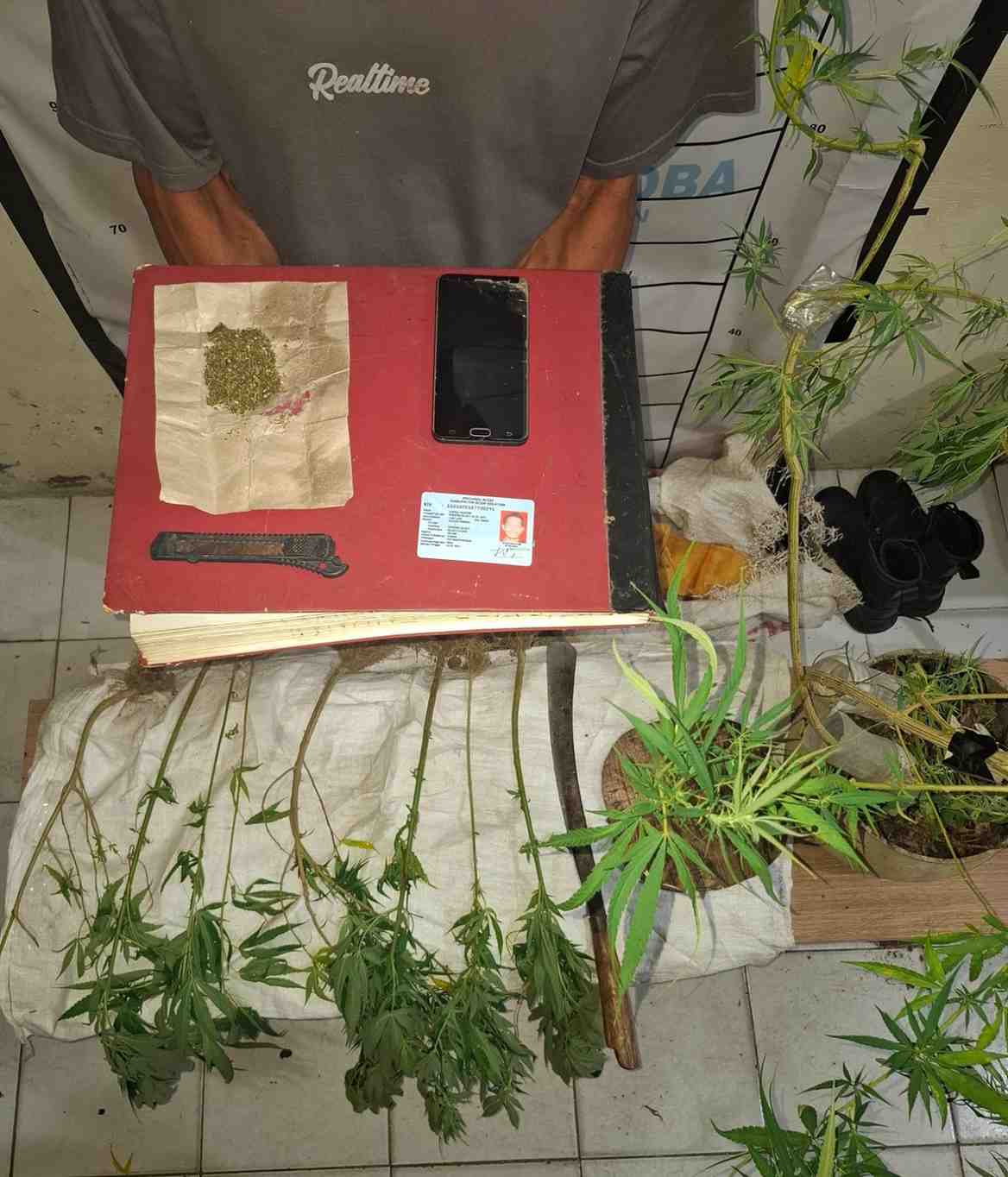“Tidak hanya itu, tersangka juga mengakui menanam ganja di kebunnya. Dari hasil penggeledahan yang didampingi perangkat desa, petugas menemukan 10 batang tanaman ganja yang ditanam di kebun miliknya,” kata Kasat Narkoba.