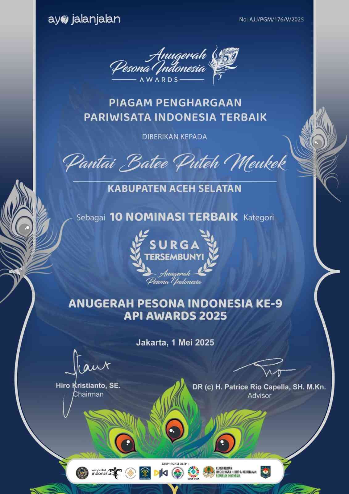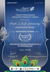 ASPIRATIF|Aceh Selatan – Pemerintah Daerah Aceh Selatan, melalui Dinas Pariwisata Aceh Selatan mengajak masyarakat Aceh Selatan untuk berpartisipasi memberikan dukungan penuh terhadap 2 Nominasi kategori wisata yang lolos di Ajang Promosi Wisata Nasional lewat Event Anugerah Pesona Indonesia (API Award) 2025 ini.